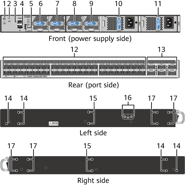 When the ports in a port group work at the rate of 25 Gbit/s, they support only 25GE modules or cables and will go Down if other types of modules or cables are used. When the ports in a port group work at the rate of 10 Gbit/s, they support only 10GE modules or cables and will go Down if other types of modules or cables are used. When the ports in a port group work at the rate of 1 Gbit/s, they support only GE modules or cables and will go Down if other types of modules or cables are used.